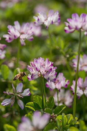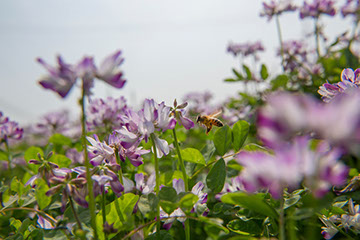レンゲ畑に巣箱を置く前から、花が咲き始めたことを匂いで素早く感知して飛んできた