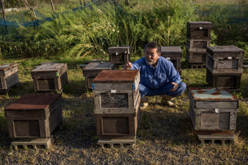 |久し振りに太陽が姿を見せた4月中旬の朝、勢いよく巣箱から飛び出していく蜂たちを愛おしげな眼差しで見つめる中村邦博(くにひろ)さん(57)は、持って行き場のない憤りを抱えていた。