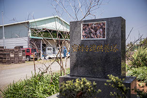 中村養蜂園の入り口に先代が建てた蜜蜂々魂供養塔