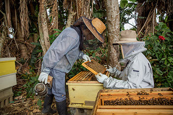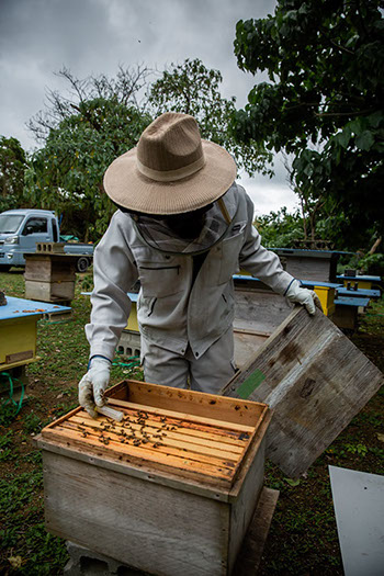 石垣島で生まれ育った高幸さんと蘭さん夫妻が、対等な関係の養蜂家として認め合い蜜蜂と接する姿は新鮮に映った。「蜂蜜を石垣島のふるさとの味として定着させたい」と抱負を語る蘭さんの言葉は、半径2キロ圏内しか飛ぶことのできない蜜蜂が背負った風土こそ、蜂蜜が内包している魅力であることを見事に言い当てている。養蜂歴8年ではあるが、高幸さんと蘭さん夫妻は蜜蜂から自然の価値を学ぶことができる本物の養蜂家なのだ。