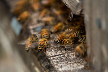 気温が上がらない日の蜜蜂は機嫌が悪くお尻を上げて威嚇する