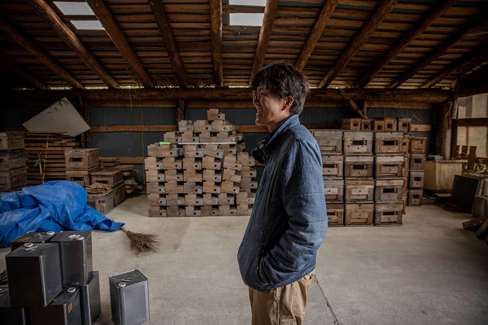「両親がやっていた建設業を継ぐ気はなかったので、他所に働きに出ていたんですけど、全国へ転勤のある会社に勤めていたので上手くいかなくなって、30歳の頃に辞めて、次の仕事を考えていた時に『蜂をやらんか』と祖父に声を掛けてもらって……。ちょうど祖父が規模を広げようとしていた時でした。養蜂の仕事に惹かれたのは自然相手であることと、他所で働いていたのが売る側の仕事だったので、養蜂は物作りの面があることに魅力を感じましたね。真っ当な安心安全な食品を作ってみたいという気はありましたね」
