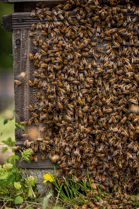 払った蜂が、どうした訳か巣箱に入らないで巣箱の外に集る