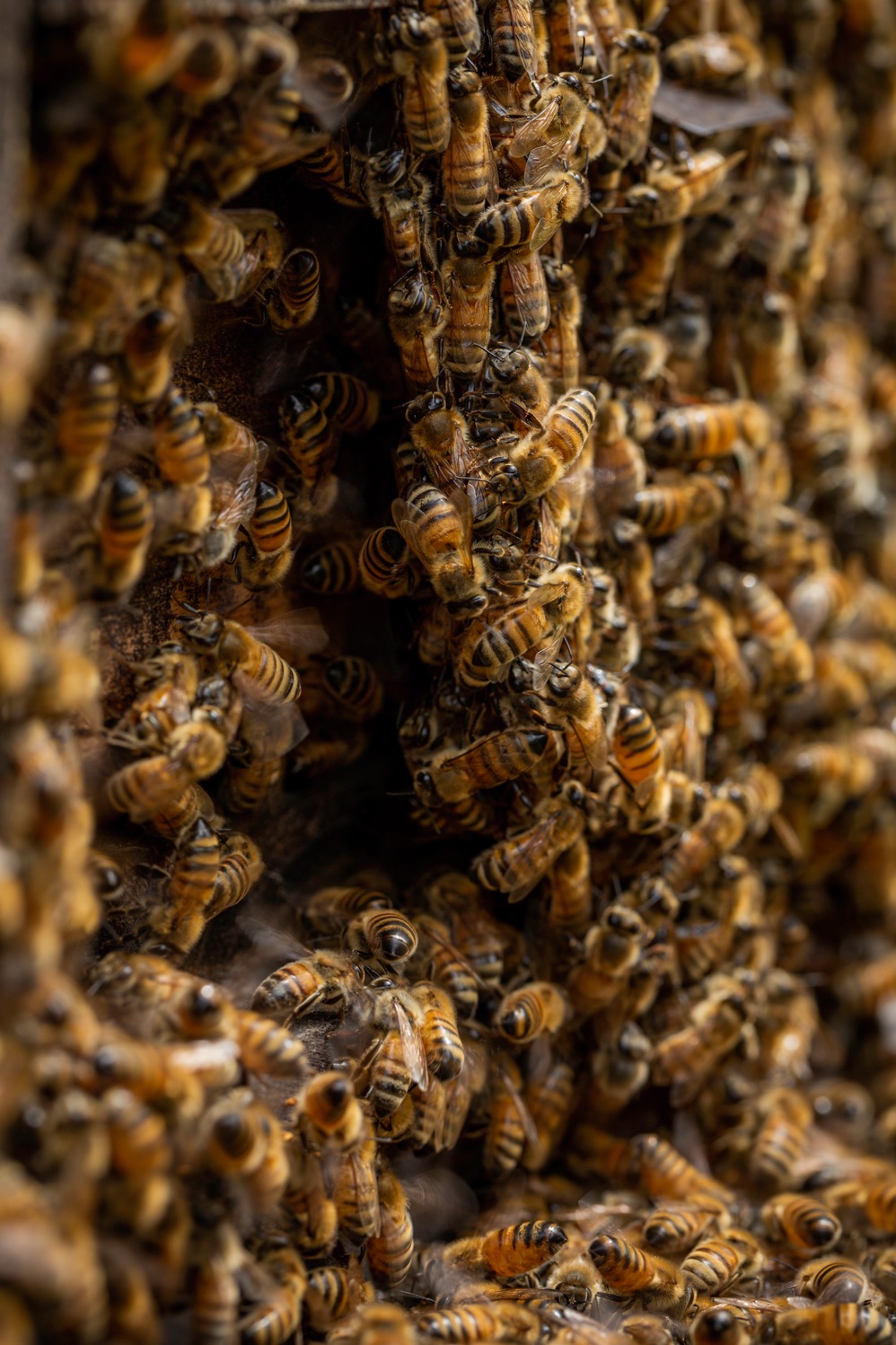 蜜巣板を取り出して払った蜂が巣箱に入らないで巣門付近に集る