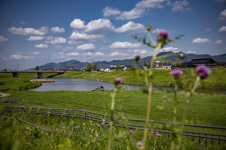 日曜日の午後、ファーム貞光から近い犬鳴川には釣りを楽しむ人々の姿があった