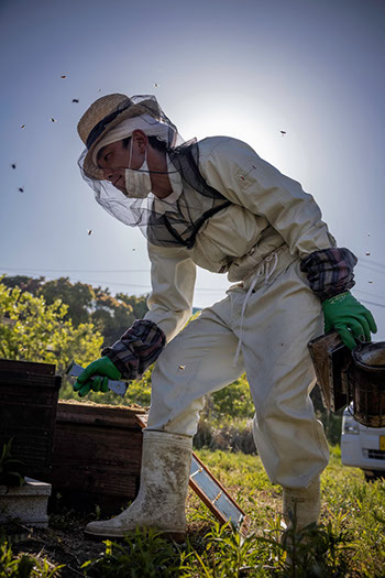 蜂場からの帰り道、軽トラックを運転しながら雅彰さんが心細そうにポツリと言う。「他所で働いたことがないけん、農業のことしか知らんですもんね」。年長者の私としては、「それで良いんだよ。一つの分野を極めれば根っこは全ての分野に通底しているんだから」と、励ましにもならない平凡な言葉を掛けるしかなかった。自らの不安をポツリと口にする雅彰さんの口ぶりから彼の誠実な人柄が伝わってくる。