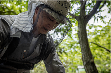 ふっと昨年の自然現象に抗うことはできなかった養蜂業の宿命を思い出したように呟いて、大滝蜂場ゲートのロープを閉じた住夫さんが振り返るように空を仰いだ。