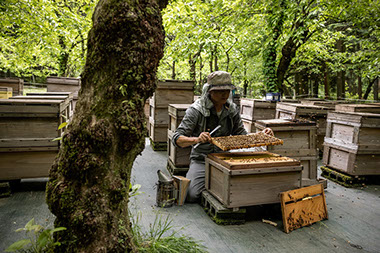 「去年は雨が多くて気温が低くて、蜜は採れない、蜂を割る(1つの群を2つに分け、女王蜂が居なくなった方の群に人工王台を埋め込んで新しい群とする作業)こともできない。最悪の年でしたね」