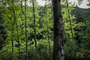 ひときわ太く高く伸びたユリノキが7、8本。その近くに幹はまだ細いが同じくらいの高さまで伸びたユリノキも数本ある。ということは、住夫さんは20歳の時にすでに養蜂家としてやっていく気持ちを固めていたということなんだと気付き、ここで人生を振り返ってもらうことにする。