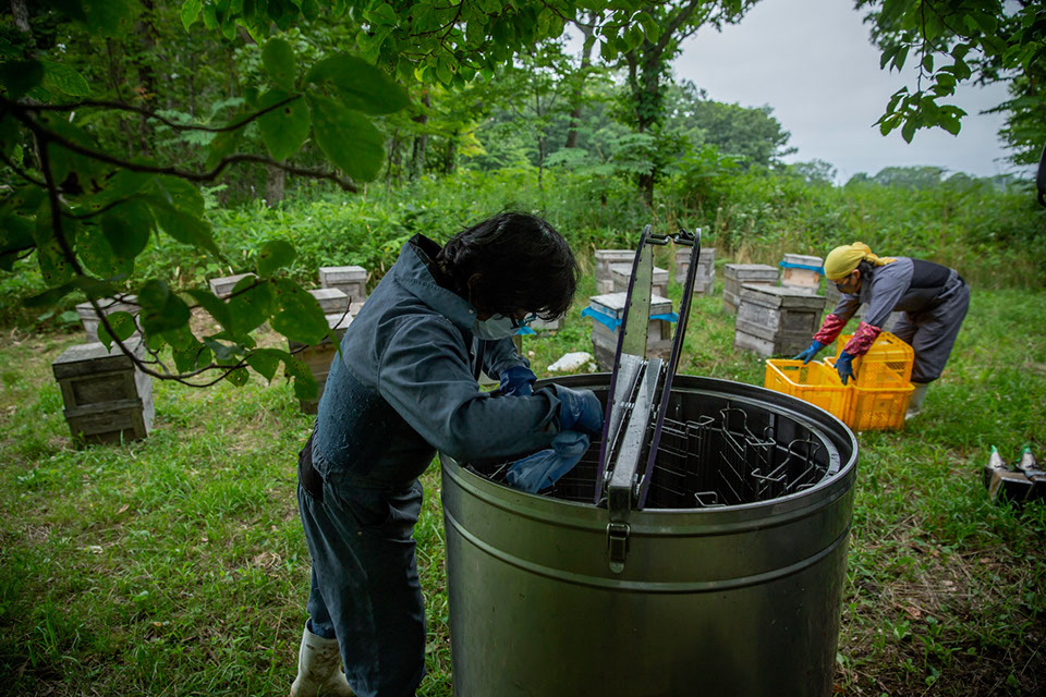 打田さんの蜂場は北海道の他に岐阜と青森にもあって、太史さんと元矢さんは研修という形で打田さんの蜂場で働くことになる。「養蜂の大きな流れは打田さんの指示でやるのですが、養蜂の基礎は太史から教えてもらったですね」と、元矢さん。