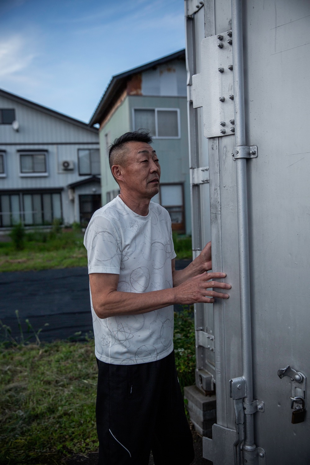 髙橋さんが巣板を10℃以下で保管するために設置した船舶用冷蔵コンテナの扉を開ける