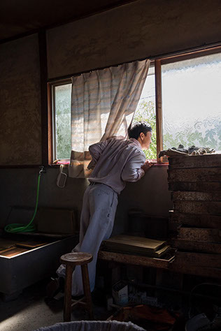 |黙々とこなす仕事の合間に、恭司さんが窓から顔を出して外の景色を眺めていた。