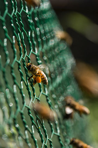 スズメバチの侵入を防ぐため巣箱の前に