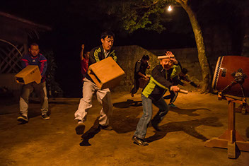 仕事を終えた恭司さんは、2日後に迫った祭のために地域の公民館で獅子舞の稽古に励む