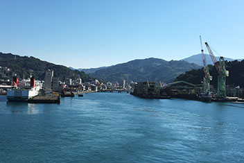 背後にミカンや柿を栽培する山が迫り、古い街並みが残る八幡浜市街地は、地域の絆の強さを感じさせた