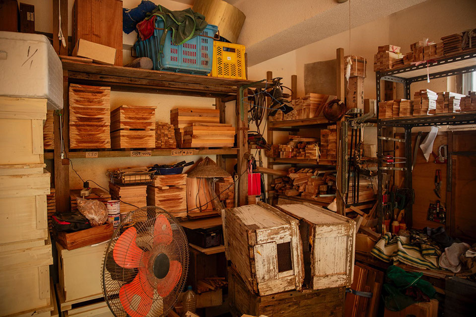 「僕は、庭師になるのが夢だったので南部農林高校に入学したんです。その頃は先生から蜂蜜の注文を受けて、職員室で販売していましたよ。高校一年生の時にはウズラを飼い始めて卵を配達していたこともありました。ウズラで高校の農業祭で賞を貰いましたよ。糞を片付けるのが大変でした、毎日ですからね。南部農林高校を卒業して沖縄植物園に一年間勤めてから、沖縄書籍輸入組合で週刊誌を書店に配本する仕事をすることになって……。あの頃はまだ本土復帰前だから円をドルに変換しないとならないし、配本数によって単価が変わるもんだから計算が大変。電卓はない頃ですから、そろばんですよ。そこで一年と一か月くらい働いて、お金を貯めて運転免許証を取って、どうしても庭師になるための勉強をしようと東京へ出て行ったんです。勉強に行った貸し植木屋で働き始めて一年余経った頃ですかね。妹から手紙が来て、父がめっきり弱ったと……。長男の宿命といいますかね、それで沖縄に帰ったんですよね。ところが、うちの親父はとても元気なんですよ。それで2年くらいは友だちの農業と養豚を手伝って、その後に、本格的に養蜂を始めたんです。