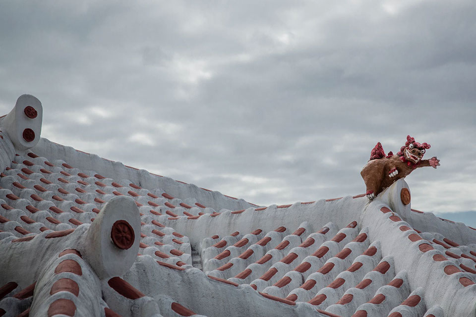 伝さんが案内する町歩きの途中で発見した変わりシーサー