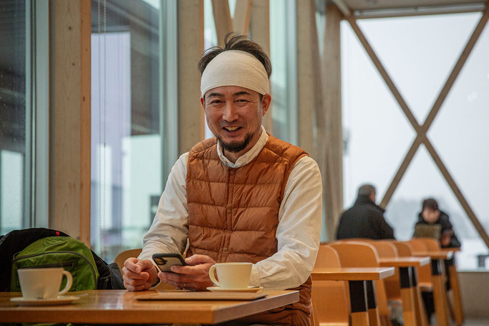 「道の駅あがの」のイートインスペースで髙橋敦志さん
