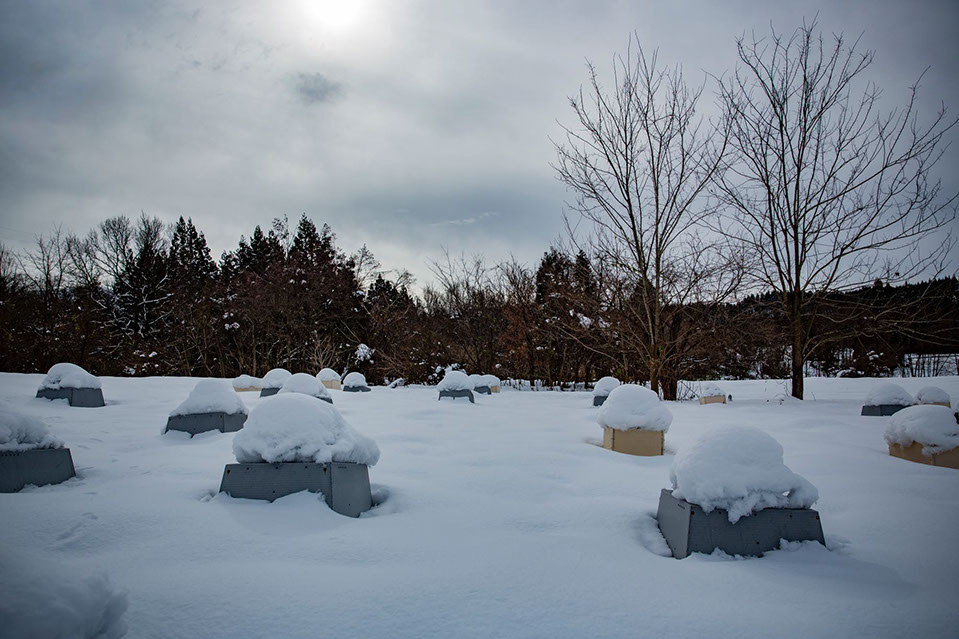 巣箱が雪に埋もれた小栗山蜂場は「八米」発祥の蜂場