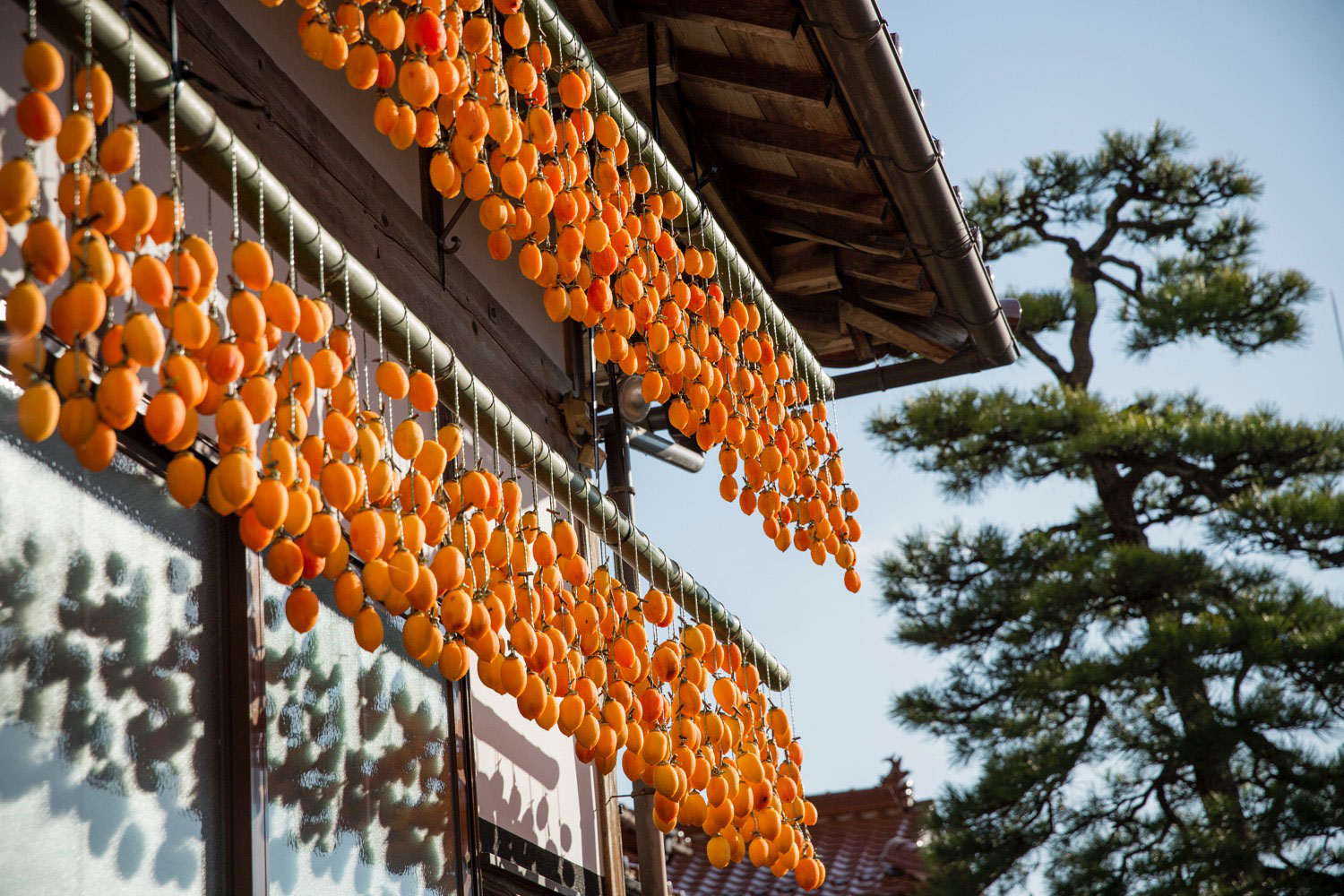 鏡野盆地の秋は深まり、町内を歩けば軒先に吊された干し柿をあちこちの家で見ることができる