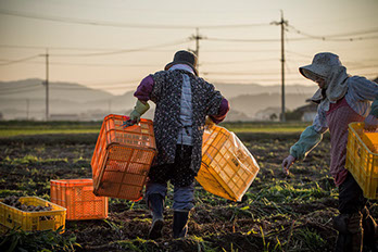 世間話が弾んだ休憩時間は終わった。「さあ、もうひと仕事」と畑に向かう季節契約社員の皆さん