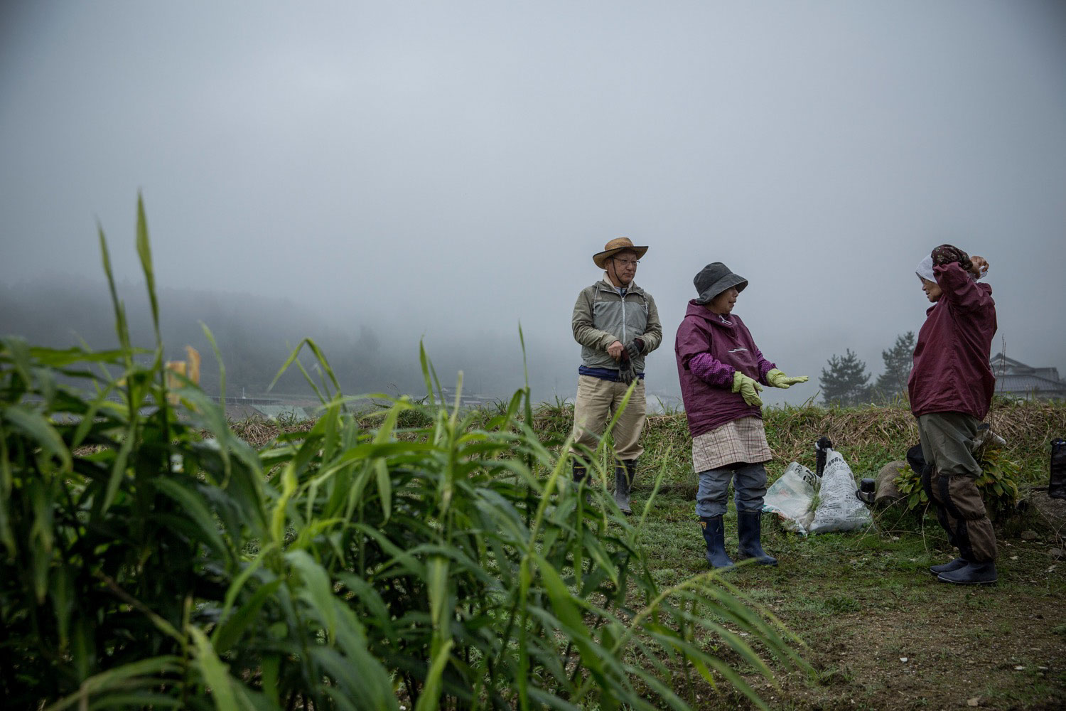 赤木さんの畑でもそうだったが「草取り」は、作物の出来を左右する生命線なのだ。この日の霧は昼前になってようやく晴れてきた。ショウガの葉に付いた朝露に濡れるのを覚悟して着込んでいたカッパを脱ぎながら純子さんが晴れ晴れとした表情で言う。