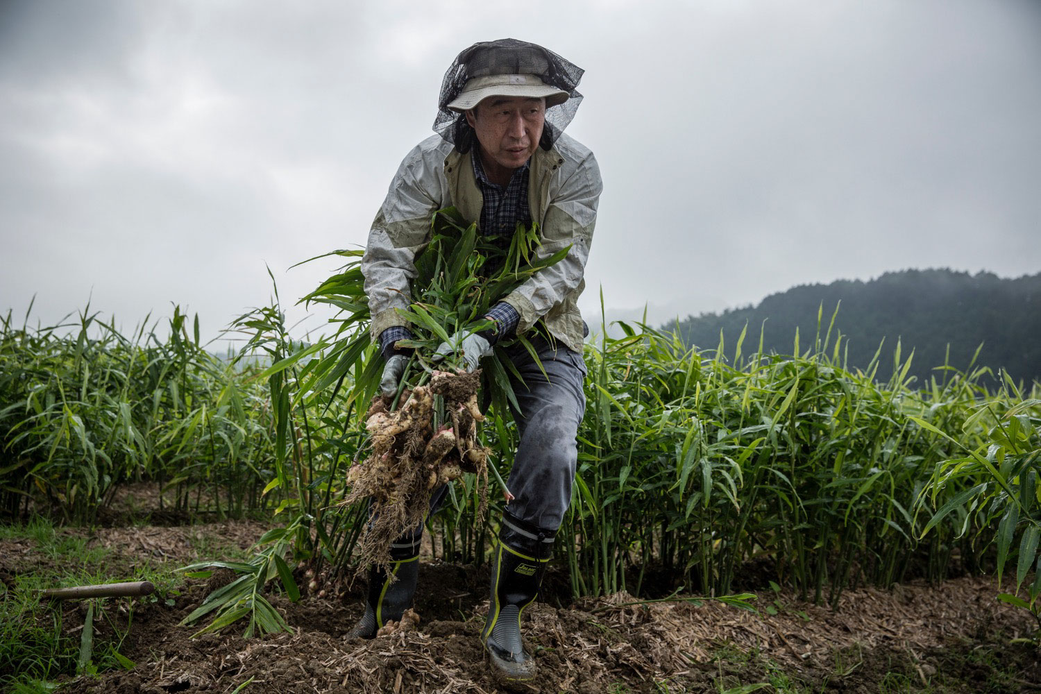 鏡野盆地は、翌朝も深い霧に覆われていた。この日ショウガの収穫をするのは長滝規(ながたき ただし)さん(61)である。今年契約農家となり、初めてショウガを作った兼業農家だ。畑は、赤木さんと同じように自宅のすぐ裏にあり、昨年までは米を作っていた水田である。