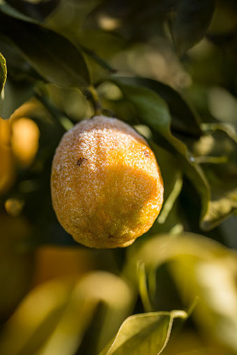 一旦寒さで凍った痕はあるが加工品なら出荷できるレモン