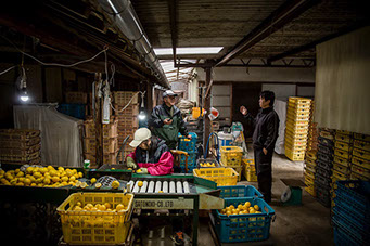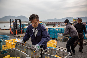 翌日は、盛(さかり)港近くの作業場でレモンの撰果だった。