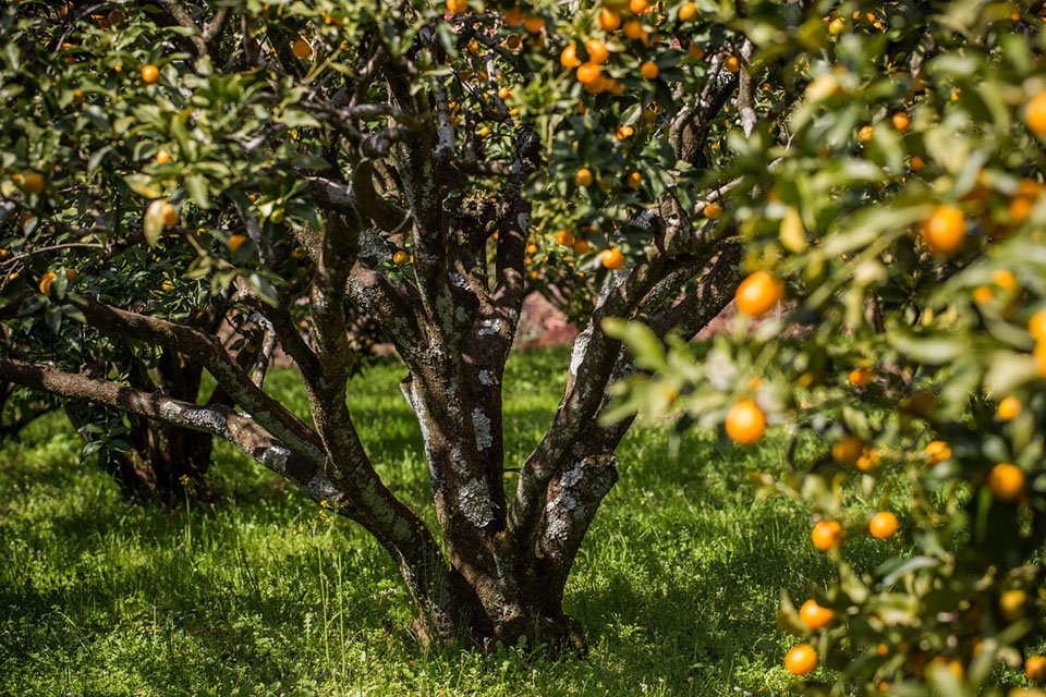 きれいに下草刈りをしてある佐和子さんのキンカン畑は、樹齢70年の木が50本植えられている