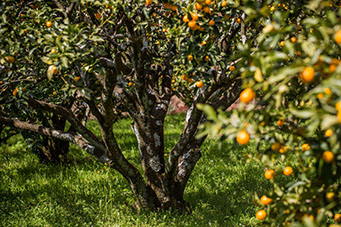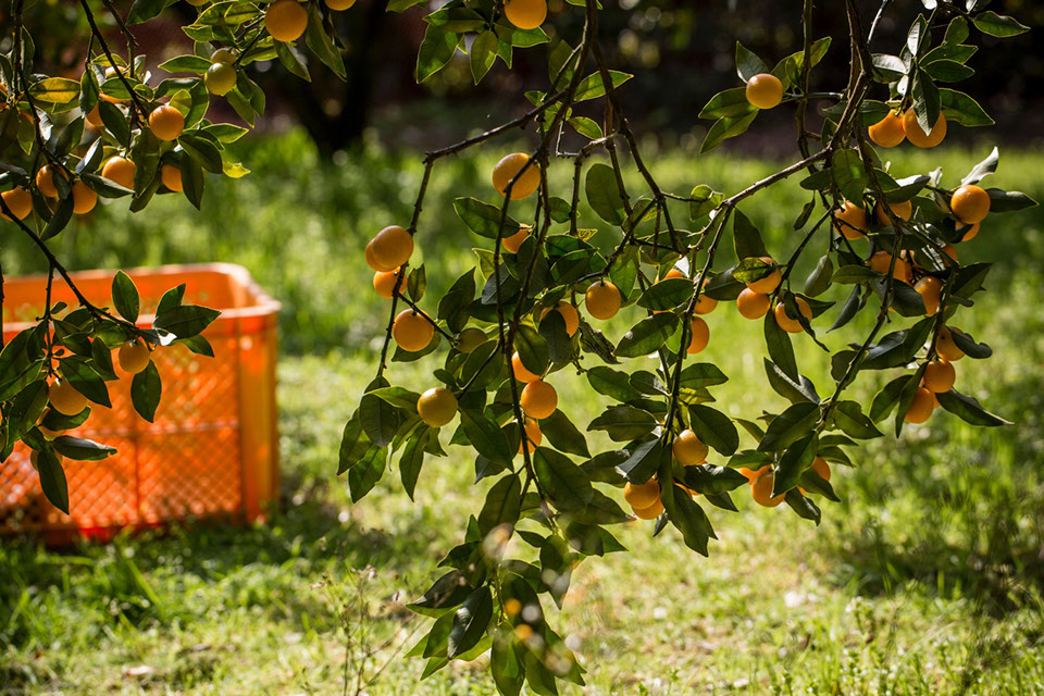 きれいに下草刈りをしてある佐和子さんのキンカン畑は、樹齢70年の木が50本植えられている