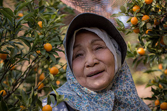 「『お前のキンカン気色がええの』とかね、『お前のキンカン美しいのう』と言ってもらえると、嬉しいですね。頑張ろうってなります。私ね、日舞やってます。下手なんですよ。年に1回ね、12月にチャリティーでね、串本の文化センターへ行くんですよ。やっぱり楽しいですよ。三味(線)の音が掛かって(聞こえて)くると気持ちも明るくなるし、私ね、1メートル52(センチ)しかないんやで。でも、舞台に出ると大きい見えるんやと。夫婦で相舞(能などで、2人又は3人以上が一緒に同じ舞を舞うこと)したかったんですけどね、もうできません。(夫の宏治・こうじさんは)脳梗塞でね、今は車イスですから、もう10年になりますね。日舞は花柳流。せっかく習うのにね、ええ踊りを習う方がええです。覚えるんがね、近ごろ、ちょっと遅うなったね。趣味を持つことは、ええことですよね」