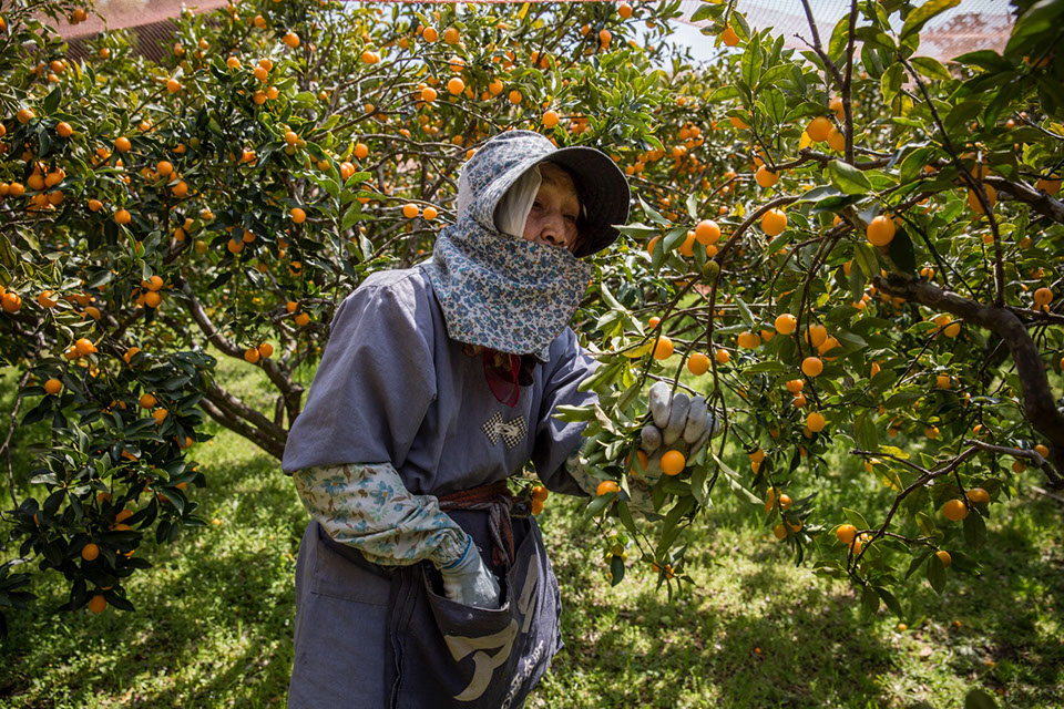 「それでも浜岡さんとこのキンカンはきれいやわ。うちのは消毒してないからよう、きたないからよう、恥ずかしいわ。消毒してない方がええ言うてくれる人もあるけど……」