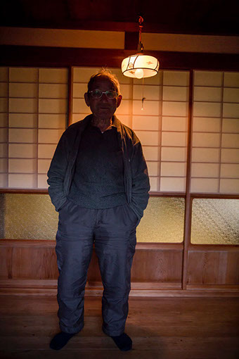 「15年前、70(歳)の時に漁をしよって、この指をローラーに巻いて指切ったんで、それで漁師をやめたたい。うちへ上がって茶でも飲まい(飲もう)。うちへ上がれ」