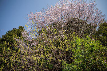 県道40号線沿いには山桜がちょうど満開を迎えていた