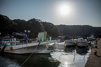 三夫さんが長年乗っていた大敷網(定置網)漁をする漁船が停泊する樫野漁港