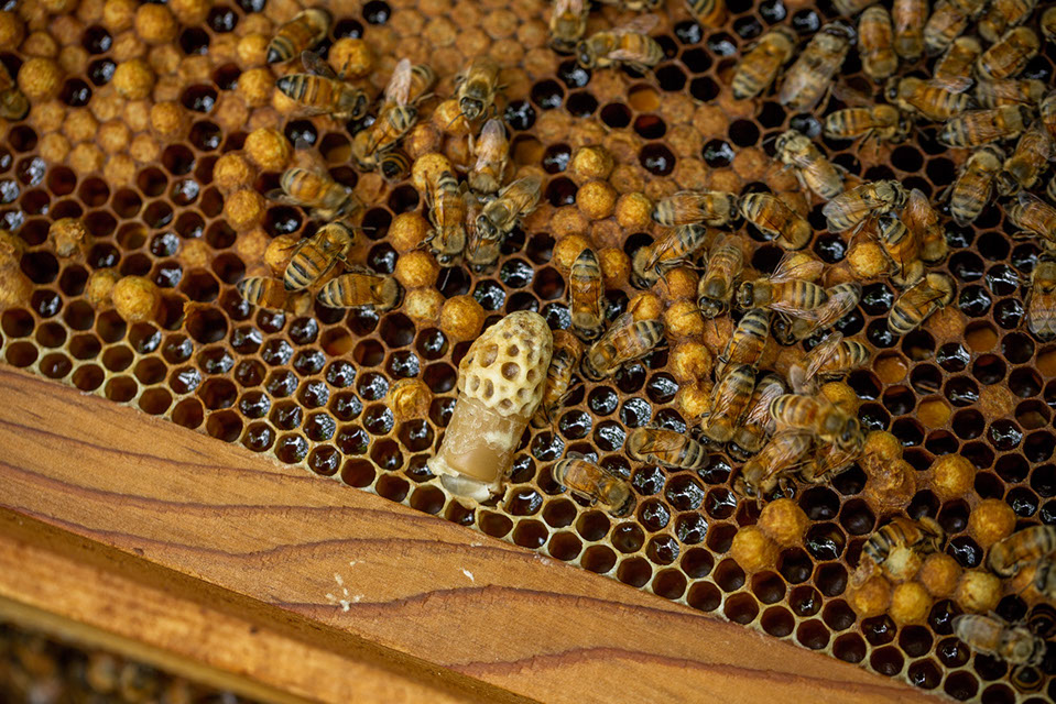 「話は前後しますけど、伊勢湾台風が紀伊半島から東海地方を襲った1959(昭34)年に、移動養蜂で北海道へ行っていた親父が蜂蜜で大当たりして、巣箱はもちろん色んな容器に現金を詰め込んで『よし、これで家を建てるぞ』と帰って来て自宅を建てたそうですよ。その年が私の生まれた年で、それで住夫と名前を付けたと聞きましたね。1962(昭37)年ごろから親父は体を壊して北海道へ行けないし、ここに残ろうということで一粒何千円としていたローヤルゼリーを採ることになるんです」