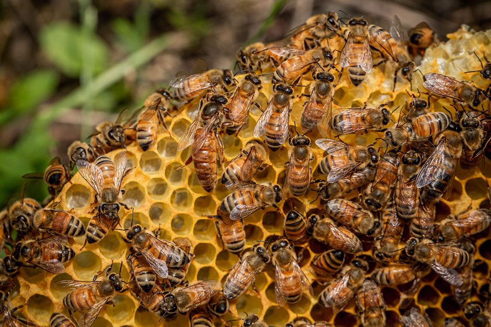 内検の際に出来ていたムダ巣に居た女王蜂(画面中央付近)