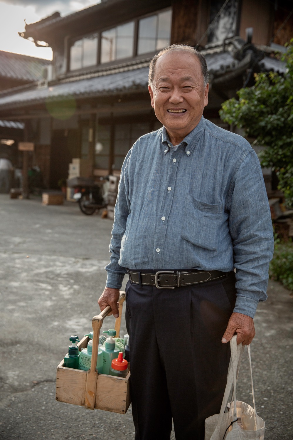 来客と仕事の区切りが付くとほぼ毎日、輝信さんは道具一式が入った木箱を持って風呂に行く