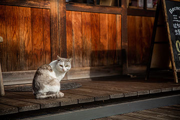 三次はちみつ蜂屋の店先に愛猫「シロ」