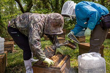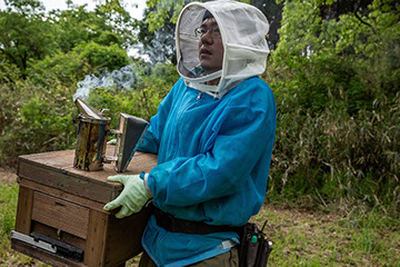 私が川北養蜂園を訪ねたのは4月下旬。「今の時期、メロンの交配がありまして、それ(交配用蜜蜂)を置いてきたんです。JAが農家に配達してくれるんで、僕らは運ぶだけやから……」と、北海道から三重県の自宅に帰ってきたばかりの翌朝だった。