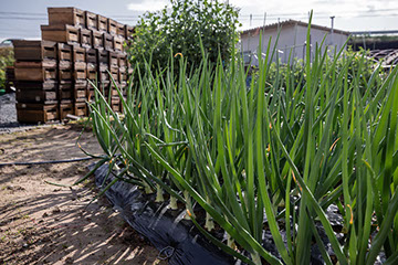 重男さん宅の傍にある畑で母親が玉ネギを作っていた