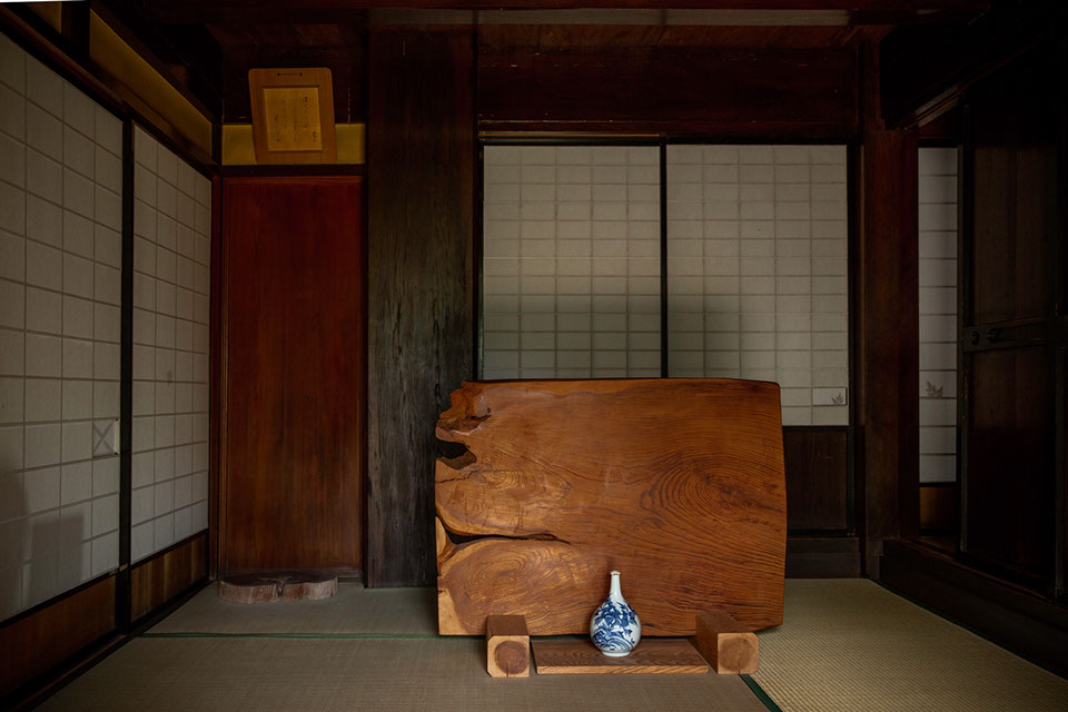 玄関の引き戸を少し開けて声を掛けるが、返答はない。薄暗い土間の奥に玄関の間が続く。ヒノキの一枚板で造られた衝立の前には徳利が置かれ、その奥は一辺3尺近くもありそうなケヤキの大黒柱。只者の屋敷ではなさそうだ。