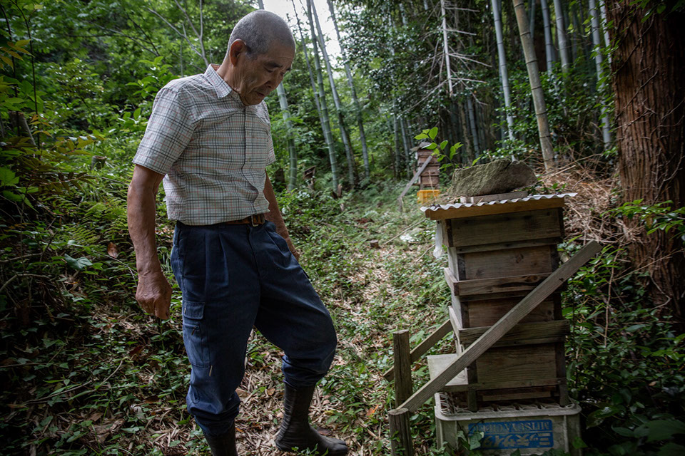 和蜂の仲間が設置した巣箱を訪ねた和良さん「やっぱり熱心にやらないと捕れませんね」