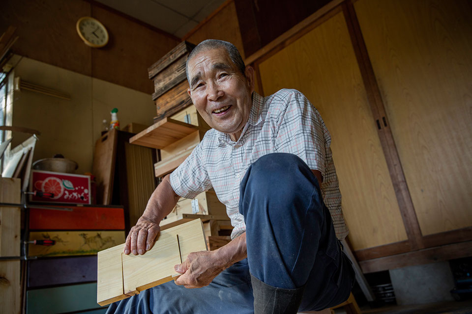 継ぎ箱の巣門を作り「今日の仕事は終わり」と和良さん