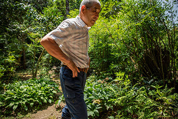 「私は80歳のガンマンでね」と突然、和良さんが言う。「9年前に胆嚢が腹の中で爆発してね。7週間、点滴だけで生きていたんです。72キロあった体重が53キロ。胆管を悪くして2回は死にかけた身ですから普通に暮らしてはいるけど、元気とは言えないですね」と話しながら、和良さんが差し出した名刺の写真には、ピンク色のバラにニホンミツバチが集まり、花弁を齧っている様子が写っている。