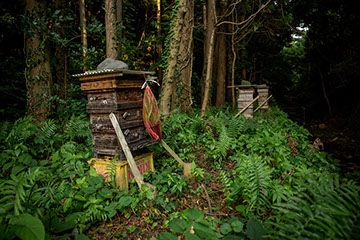 第8蜂場でキンリョウヘンを吊して設置された待ち箱