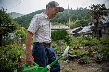 しかし、和良さんは軽トラックの運転席から確認するだけで降りる気はなさそうだ。駐車場から徒歩15分ほどで国の重要文化財に指定されている焼火神社の社殿があるらしいが、私は言い出せない。和良さんは西ノ島の南側を半周する曲がりくねった山道を西から東へ走って帰路に着いた。森の中を30分ほど走って、ようやく東側海岸近くまで下りた所に中国電力の工事車が止まって道を塞いでいる。作業服の工事関係者が和良さんの軽トラックを見付けて近づいてきた。「すみませーん、電気工事中なんで引き返してください」と簡単に言う。驚いた。引き返すということは、再び、山道を30分ほど走って、島の西側へ行けということだ。途中に近道はない。工事車を動かして脇へ寄せれば2、3分で済むことではないか、「冗談じゃない」と、私は思った。しかし、和良さん、ひと言も不平を言うことなく黙って軽トラックをUターンさせると、先ほど通ってきた山道を戻り始めたのだ。人間の出来が違う。