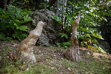 落羽松(らくうしょう)の呼吸根(膝根)が干上がった