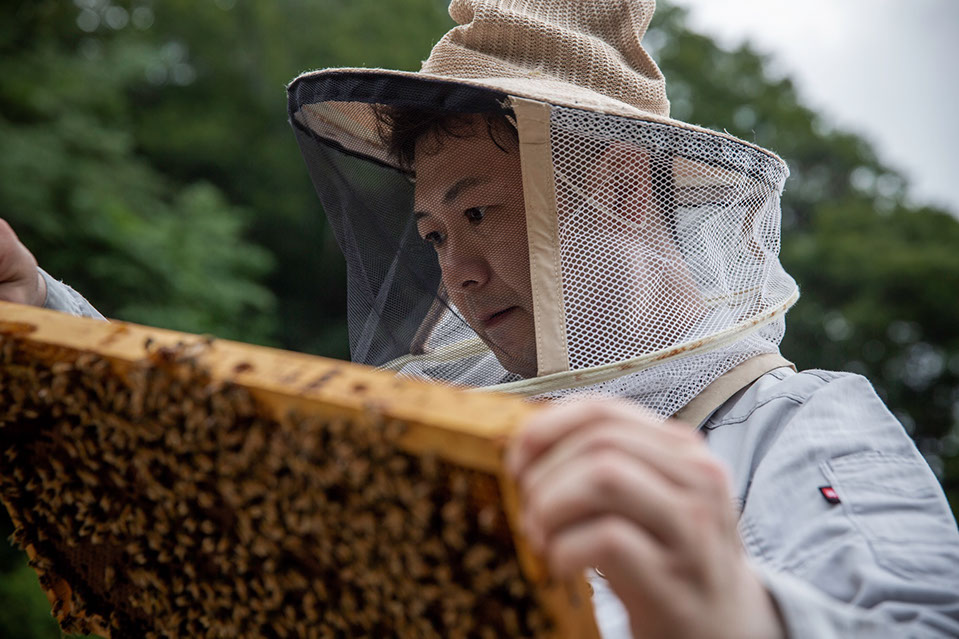 時津佳徳さんが巣房の状態を確認する